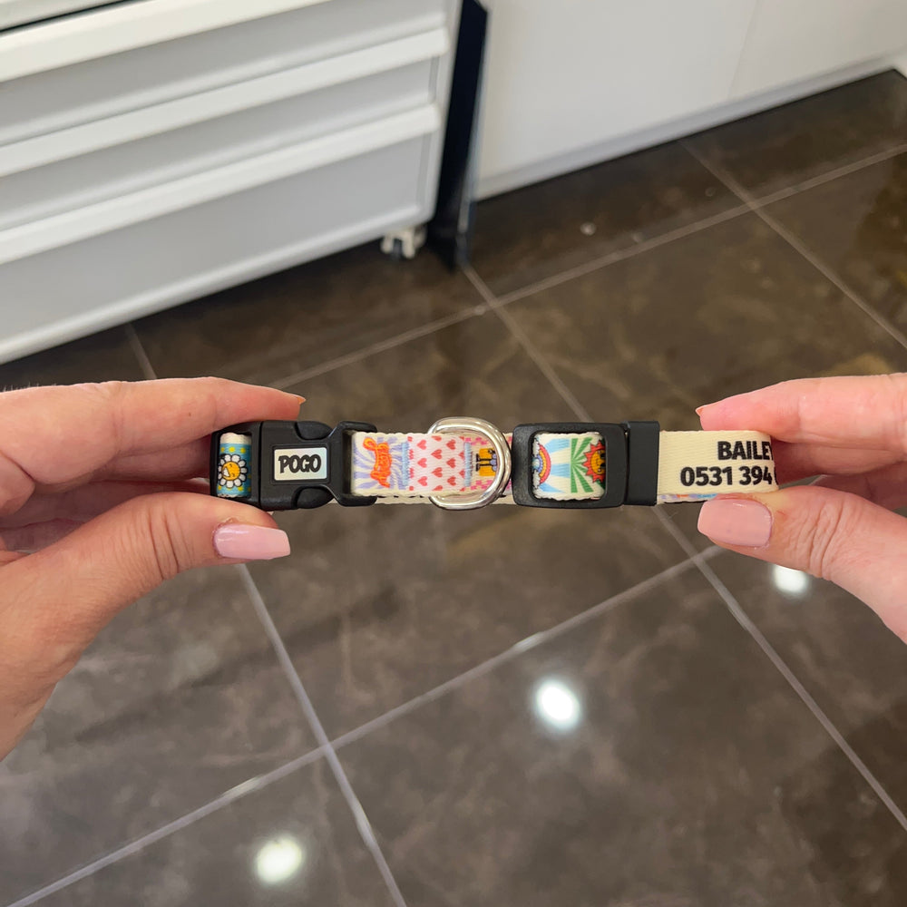 Groovy | Köpek Tasması, köpeğinizin konforu ve güvenliği düşünülerek tasarlanmış kişiye özel bir üründür. %100 polyester malzemeden üretilen bu tasma, dayanıklı yapısıyla uzun ömürlü kullanım sağlar. Yüksek çözünürlüklü kaliteli baskılar sayesinde köpeğinizin tarzını yansıtmak artık çok kolay.