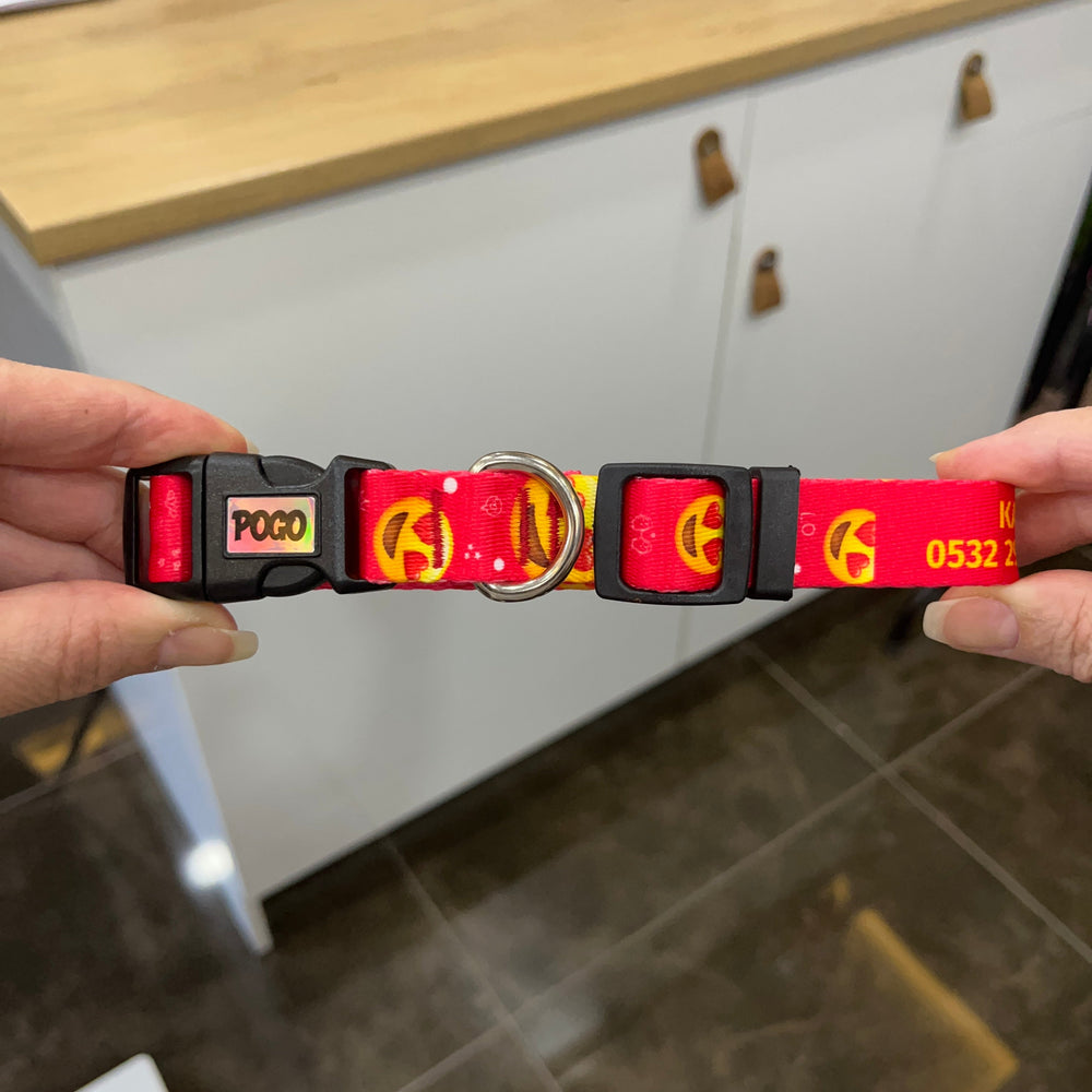 Adore | Köpek Tasması, yüzlerce farklı renk ve desen seçeneğiyle köpeğinizin stilini yansıtacak şıklıkta tasarlanmıştır. Kırmızı ve sarı gibi canlı renkler arasından seçim yaparak köpeğinizin görünümüne zarif bir dokunuş katabilirsiniz. Köpeğinize özel, tamamen kişiye özel üretim bu tasma ile hem güvenliği hem de estetiği bir arada yaşayın.