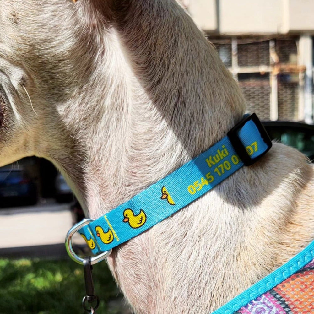 Blue Duck Köpek Tasması, köpeğinizin güvenliği ve konforu düşünülerek özel olarak tasarlanmış, şahsınıza özel üretim bir üründür. Mavi ve sarı renk seçenekleriyle tarzınızı yansıtacak, kaybolmalara karşı ekstra güvenlik sağlayan bu tasma, kaliteli ve dayanıklı yapısıyla uzun yıllar size hizmet eder.